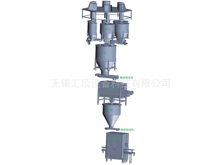 該配料系統(tǒng)主要用于多種物料的配料包裝輸送生產(chǎn)環(huán)節(jié)。該系統(tǒng)可包括原料上料輸送、原料儲(chǔ)存、選擇配方、自動(dòng)配料、物料輸送、混合拌勻、裝袋縫包全過(guò)程。根據(jù)用戶的場(chǎng)地布局和具體要求,可進(jìn)行差異化設(shè)計(jì),滿足客戶對(duì)性價(jià)比的要求。